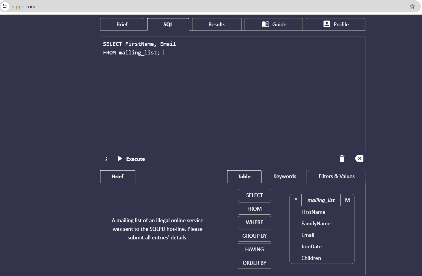 habre una cuenta en https://sqlpd.com/ te permitia practicar de una forma sencilla y practica.
